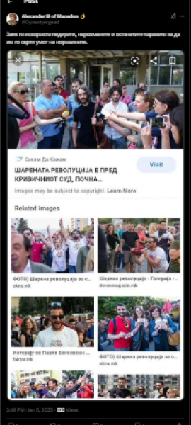На ден 05.01.2025 година, во 15:48 часот, регистриран е говор на омраза врз основа на сексуалана ориентација и родов идентитет од твитер профилот @DynastyArgead. Во постот пишува „Заев ги искористи педерите, наркоманите и останатите паразити за да им го сврти умот на нормалните“.