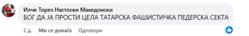 На ден 12.01.2025 година, во 21:20 часот, објавен говор на омраза врз основа на етничка и национална припадност, како коментари на фејсбук објава од страна на фејсбук профилот @ilce.nastoski. Во коментарот на фејсбук објавата пишува: „БОГ ДА ЈА ПРОСТИ ЦЕЛА ТАТАРСКА ФАШИСТИЧКА ПЕДЕРСКА СЕКТА“.
