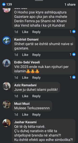Вест: Да им кажете на другарката Лиридона и хоџата Омер дека во џамија не се влага без шамија. Диреспект кон господ и верниците.
