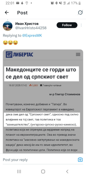 Корисникот со скриншот од навредлив текст кон македонскиот народ навредувајќи ги со зборови "глупав" а ова лице со скриншот е познат трол