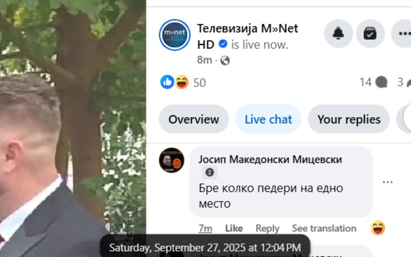 На ден 27.09.2025 година, локалната штипска телевизија „Телевизија M-Net“, на својот фејсбук профил „Телевизија M»Net HD“ објави видео со пренос во живо од претставувањето на кандидатите за градоначалници од политичката партија „ВМРО-ДПМНЕ“, за претстојните локални избори во РСМ, кое претставување се оддржуваше во Штип, во објектот на Дом на култура „Ацо Шопов“ – Штип. Во коментар, под објавениот пренос и видео, фејсбук корисникот „Јосип Македонски Мицевски“ напиша: „Бре колко педери на едно место“. Со ваквиот коментар, корисникот користи говор на омраза насочен кон припадниците на геј заедницата, преку зборот: „педери“.