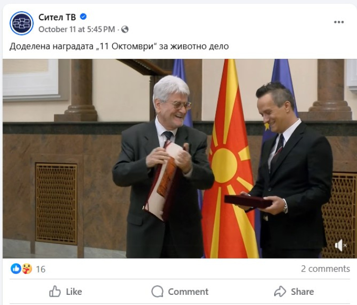 На ден 11.10.2025 година, националната телевизија „Сител“, на свјото фејсбук профил „Сител ТВ“, објави видео од доделувањето на наградата „11 Октомври“ за животно дело, а во прилог напиша: „Доделена наградата „11 Октомври“ за животно дело“. Во коментар под објавата, корисникот „Zanko Zanko“ коментира: „Мрш бре предавници... не е веќе истата држава... не е истиот празник...говна северџански...“. Со ваквиот коментар, корисникот користи говор на омраза насочен кон сите оние коие гласаа за промена на уставното име на референдумот во 2018 година.