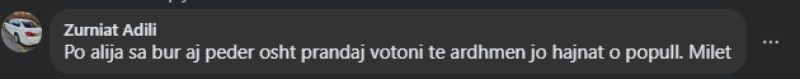 Има многу вонземирувачки коментари кон Ахмети , но на неколку го нарекуваат –педер-.