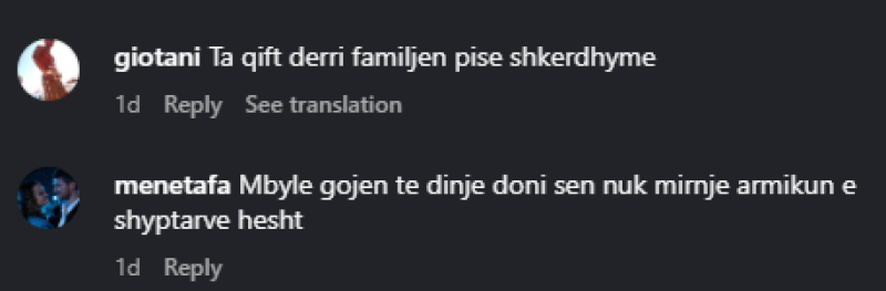 Постот има околу 400 коментари и скоро сите содржат некој вид на омраза или вознемирување.