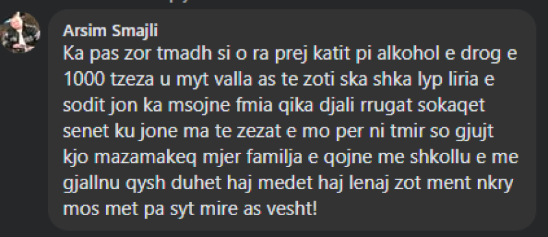 Арсим Смајли пишува – била во голема неволја , паднала од алкохол и дрога и 1000 црнила се убила ни кај господ ја нема таа слобода што ја бараат , научиле децата каде се најлошите работи на улици, жалосно фамилијата ја однеле да се школува...