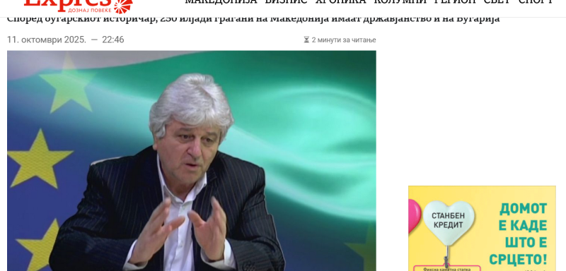 Бугарскиот професор и историчар Александар Гребенаров „изброи“ 250.000 македонски граѓани со бугарски пасош, поради што на Македонците им предвиде дека ќе се нашле во ситуација да бараат место во македонскиот устав како Бугарите сега?!