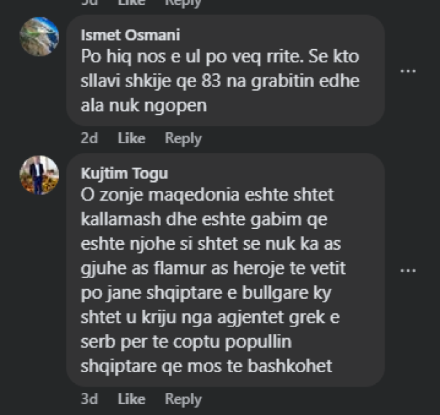 24.12.2025 8.28 pm Кујтим Тогу : Госпого мекдонија е детска држава и е грешка дека е признаена како држава бидејки нема ни јазик ни знаме ни свои херои бидјеки се албнаци и бугари оваа држава се создаде од грчки и српски агенти за да го поделат албанскиот народ да се не се спои