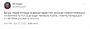 На ден 16.11.2025 година, во 19:15 часот, објавен е говор на омраза врз основа на пол и род и сексуална ориентација и родов идентитет од X профилот...